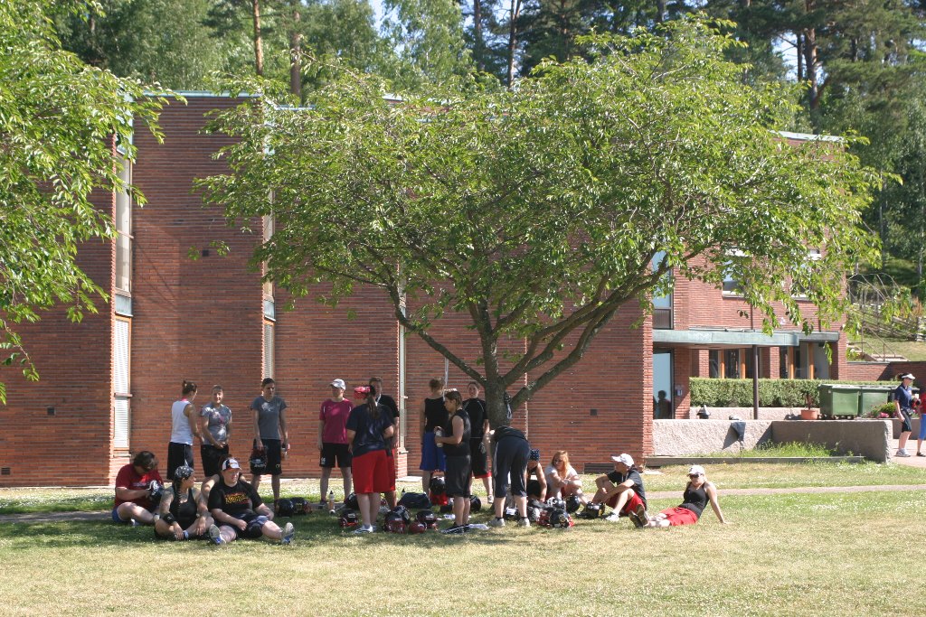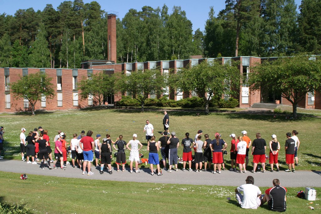 Schnell sind die Zimmer beschlagnahmt, nur noch in Sommerklamotten geschmissen und los geht´s zum Team-Hotel. Nach ca. 45 Minuten mit den Öffentlichen kommen wir im Nirvana Schwedens an. Von der Bushaltestelle zum Hotel sind es laut Hinweisschild 50 Meter. Es muss sich um ein anderes Längenmaß handeln, denn das Hotel erreichen wir erst nach 10 Minuten. Dort treffen wir gleich auf das Team aus Finnland. Es kribbelt, bald geht die erste WM los. Als wir auf die Deutsche Nationalmannschaft treffen, werden wir herzlich begrüßt. Doch viel Zeit ist nicht, der Zeitplan der Spielerinnen und Coaches ist straff. Am Abend steht noch eine Trainingseinheit im Stadion Zinkensdamm an.
