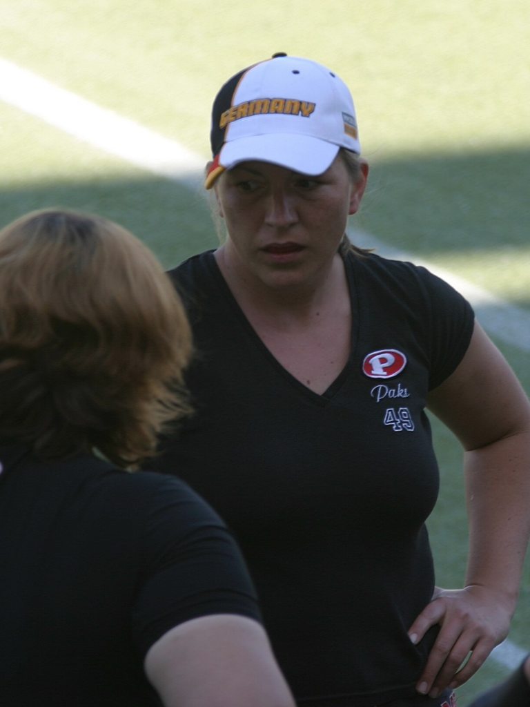 Beim Spiel um Platz drei wurde sie vom Veranstalter mit der MVP Ehre ausgezeichnet, weil sie am Ende zwei Touchdowns erzielte. Nach der Übergabe der Helm-Trophäe auf dem Feld ging sie direkt zu Manuela Scott und gab ihr die Trophäe weiter. Mit dieser fairen Geste zeigte sie icht nur Team- und Sportsgeist, sondern auch  was jeder im Team Deutschland dachte: Manuela Scott hatte sich die Ehre verdient!