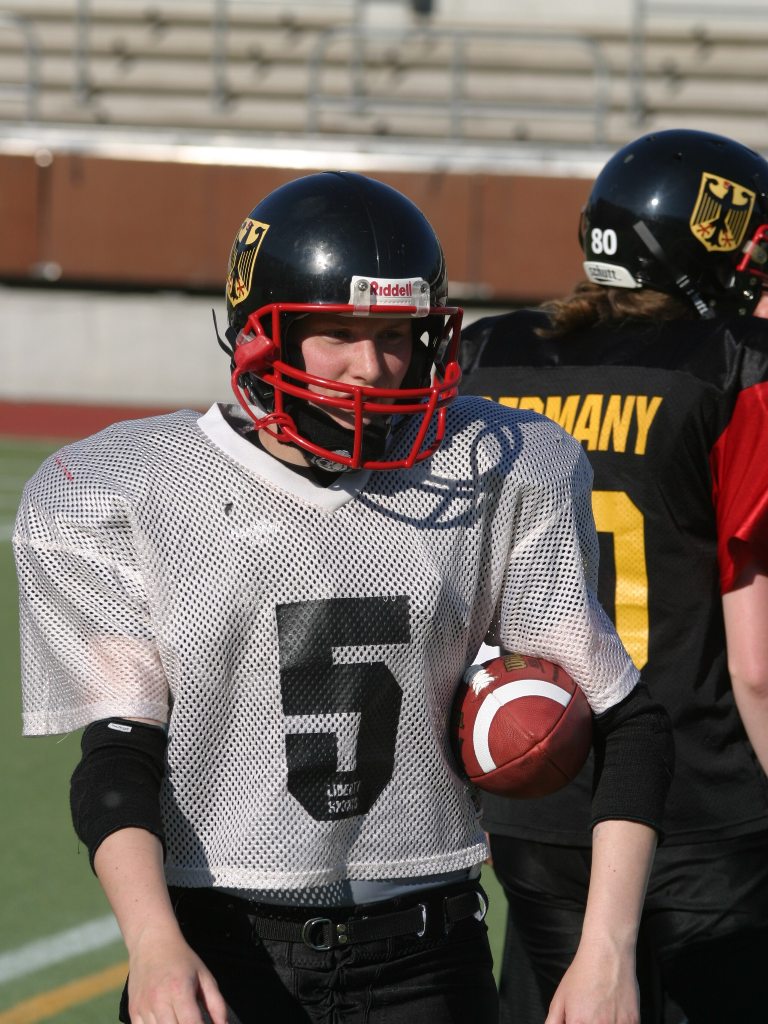 Die ersten Tage nach der Rückkehr in die Heimat hat der erste deutsche weibliche Quarterback einer Footballnationalmannschaft noch ein wenig surreal in Erinnerung: „Ich habe mich so gefühlt, als wenn ich von einer Reise vom Mond zurückgekommen wäre und mich nun fragen würde, was denn jetzt noch folgen könnte. Die Erlebnisse der WM in Schweden und die 10 Tage eines sehr geregelten Tagesablaufes haben Spuren hinterlassen“, erklärt Gabi Duvinage. „Es war persönlich eine große Erfahrung und ich bin auch sehr stolz, dass ich Deutschland in Stockholm vertreten durfte und dass meine Heimatstadt Dietzenbach mich auch unterstützt hat. Am Montagabend stand das Telefon nicht mehr still und viele Bekannte wollten wissen, was wir alles erlebt hatten.“ So eine Reise hat bei Gabi den Hunger nach Mehr geweckt und sie will nun, auch wenn die gelernte Gärtnerin sich schon ein wenig im besten Alter befindet, auch bei der zweiten WM, die wohl in Nordamerika in drei Jahren veranstaltet werden soll, wieder dabei sein. „Wenn ich die Try-Outs bestehe, die Coaches mich wollen und wenn die Füße mich weiter tragen, dann will ich auf jeden Fall wieder dabei sein.“ Über ihre Form macht sich Gabi dabei keine Gedanken: „Ich bin beruflich immer an der frischen Luft und arbeite auch körperlich. Unser Footballtraining ist mindestens zweimal wöchentlich und in einer Fahrgemeinschaft wickeln wir die Strecke Großraum Frankfurt-Nürnberg mehrmals ab. Wir lieben den Footballsport und opfern dafür gerne unsere Freizeit.“